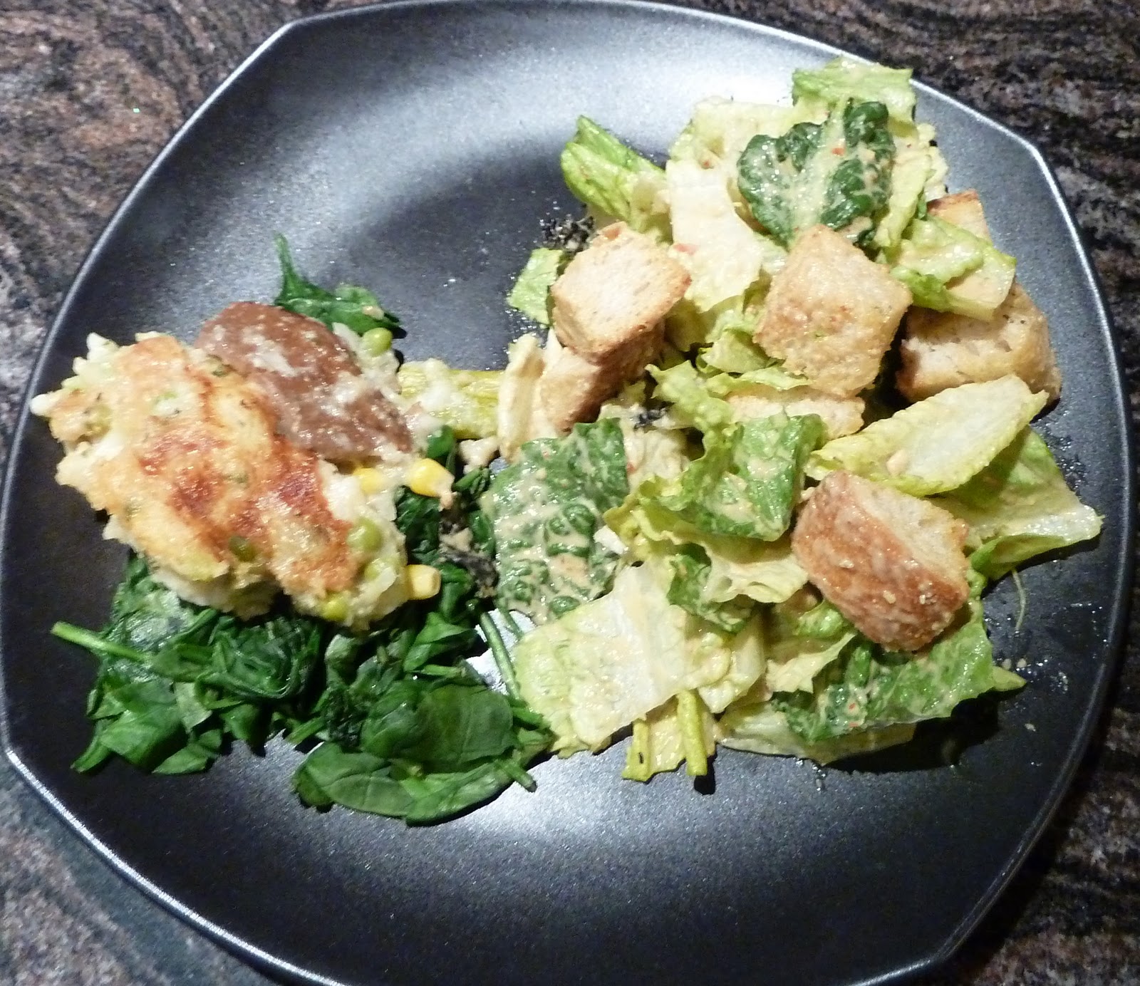 **side note...the salad is on the right of the pic...on the left is my runny polenta casserole on some wilted spinach...clarification just in case the casserole looks like a giant crouton**